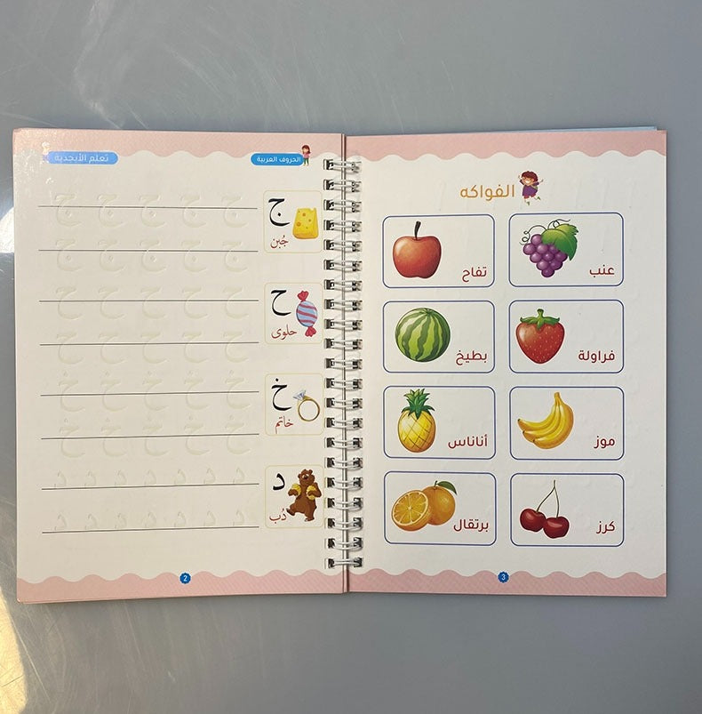 تقنية الحبر السحري: يكتب الطفل، وبعد 10 دقائق يختفي الحبر تماماً ليعود الدفتر جديداً! هذا يعني تدريباً لا نهائياً دون الحاجة لشراء دفاتر جديدة كل يوم.